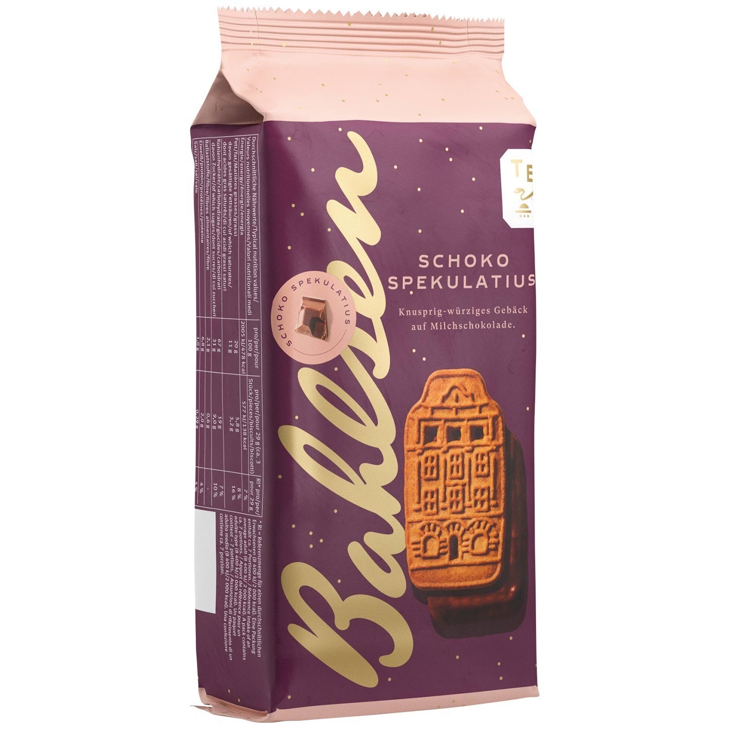 Ein Klassiker in Schokolade. In der Weihnachtszeit darf köstlicher Gewürzspekulatius auf keinen Fall fehlen. Bei dem leckeren Bahlsen Schoko-Spekulatius wurde der beliebte Klassiker mit feinster Milchschokolade verfeinert. Erleben Sie diesen süßen Genuss bei Ihrem Adventskaffee und lassen Sie sich von den nostalgischen Motiven in Ihre Kindheit zurückversetzen.