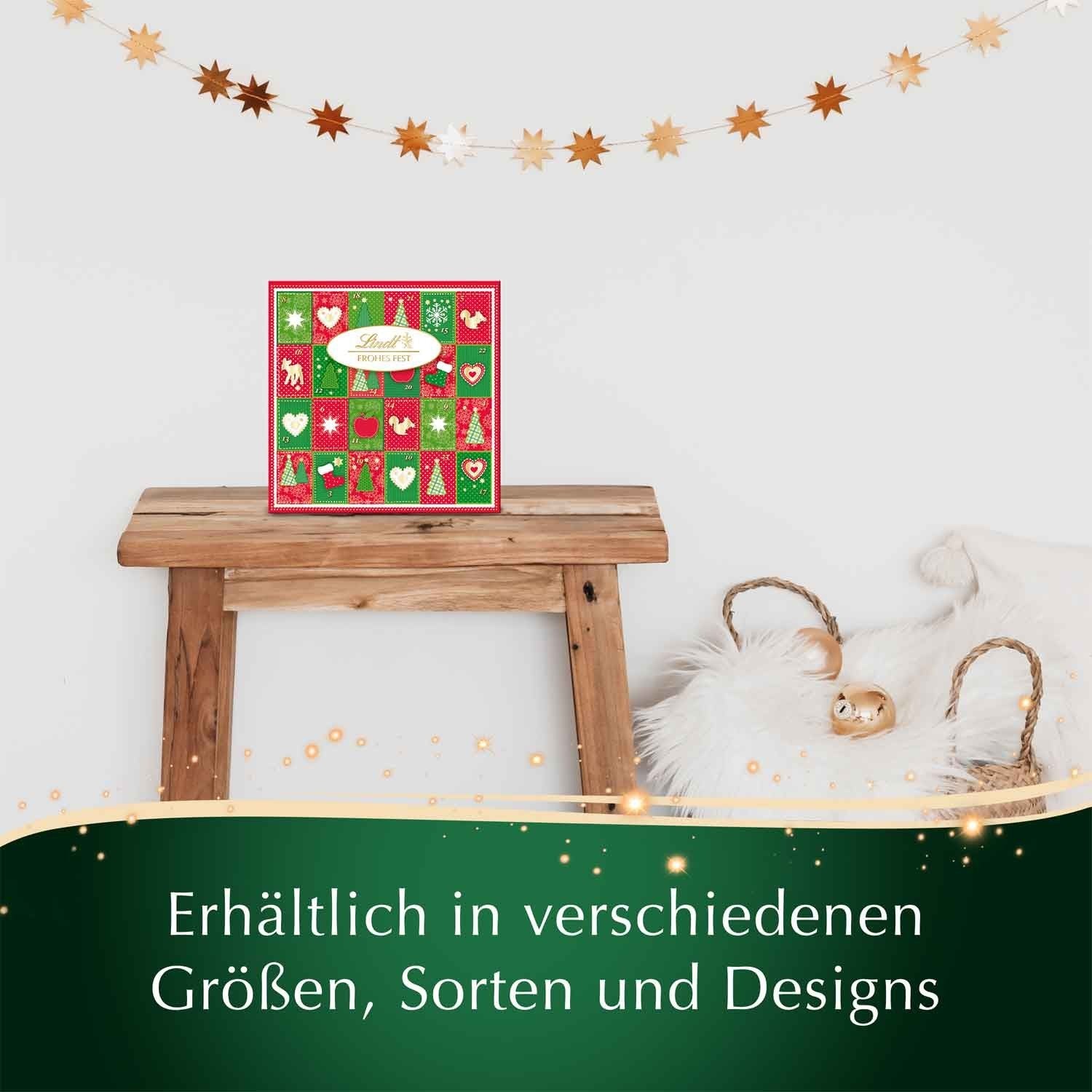 Die kleine Aufmerksamkeit für die Vorweihnachtszeit. Der Lindt Frohes Fest Mini-Tisch-Adventskalender überzeugt mit kompakten Maßen von ca. 16×23 cm und dem köstlichen Inhalt. Denn er ist gefüllt mit 24 Gourmet-Mini-Kugeln in 6 köstlichen Sorten ohne Alkohol. Mit der praktischen Aufstellfunktion macht dieser Adventskalender auf jedem Tisch und jeder Kommode eine gute Figur.