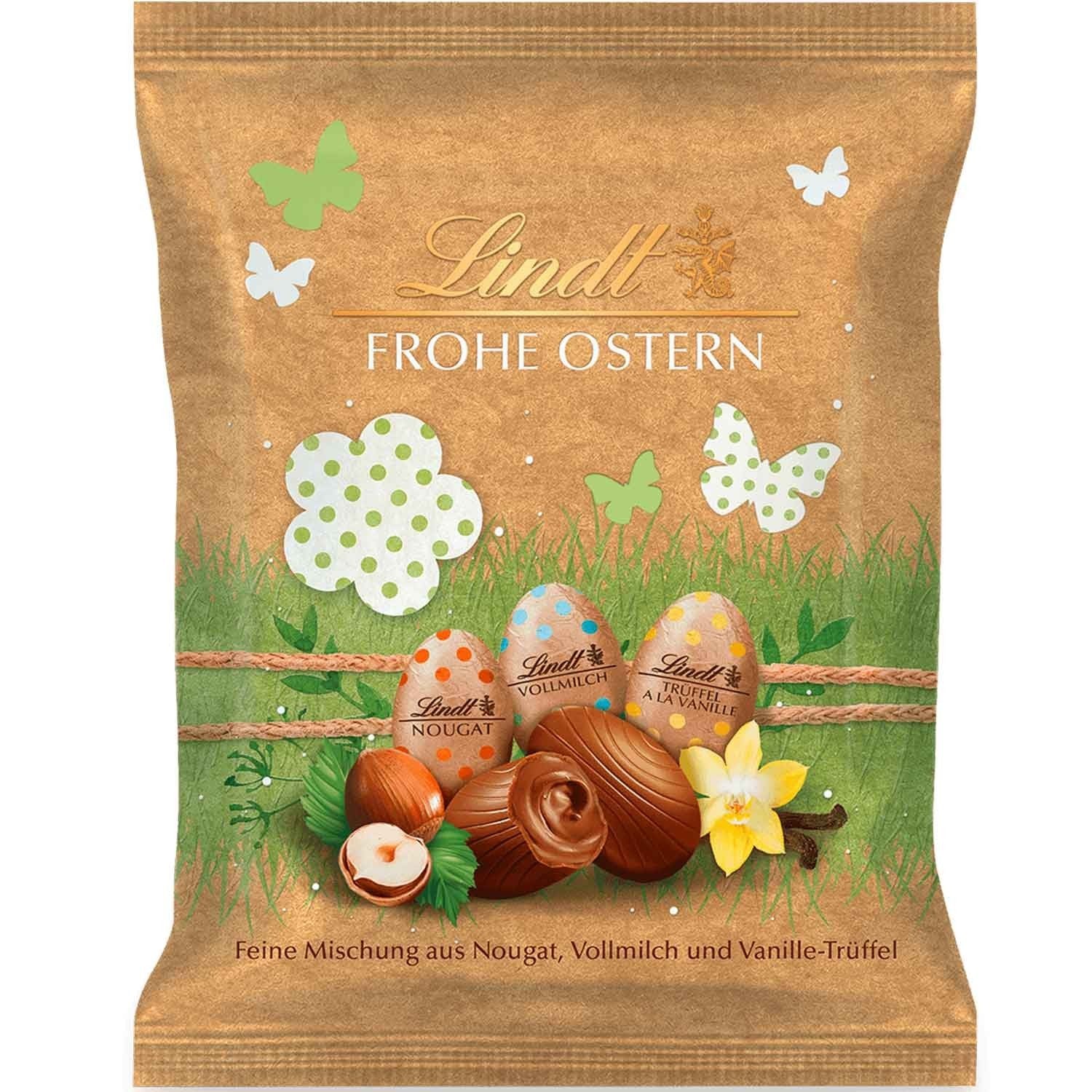Dreierlei Ostergenuss. Mit der tollen Lind Natur Edition Mini Eier-Mischung Können Sie die ganze Vielfalt genießen. Die köstlichen Sorten Nougat, Vollmilch und Vanille Trüffel bescheren...